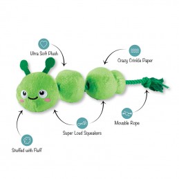 A ten out of an-ten-na! PetShop by Fringe Studio's “Pillar of Society” plush toy is perfect for playtime, anytime. This toy was designed with interactive play in mind with a loud squeaker and crazy crinkle paper in each piece of the caterpillar's body, plus a tuggable rope with sliding toy function. Whether you squeak, crinkle, tug, or toss it, this toy will give your pup all the fuzzy-good feelings.