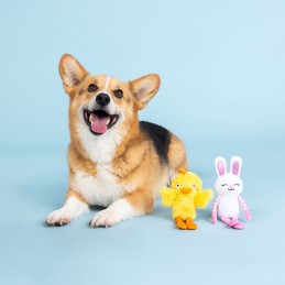 PetShop by Fringe Studio's “Hoppy go glucky" 2 piece plush toy set is perfect for playtime, anytime. Made with a super loud squeaker and crazy crinkle paper in each toy, this set was designed with interactive play in mind. Whether you squeak, crinkle, or toss them, these toys will become near and dear to your pup. Great for all dog sizes and not intended for aggressive chewers.