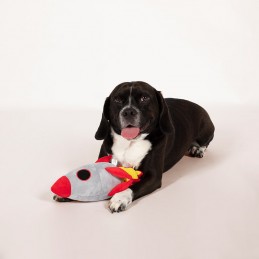 Ready for lift off! PetShop by Fringe Studio's “Space Mission Rocket Ship” plush toy is perfect for playtime, anytime. Made with a super loud squeaker, shiny metallic accents, and stuffed with fluff, this toy will have your pup thinking get outta my space, I’m ready for playtime.