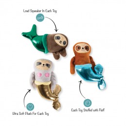 Set of 3 pieces; Plush Mermaid Leopard in green, gold and blue. Loud Squeaker in each toy. Dim. approx. 15x10cm per toy. Packed per set.