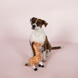 Jirafa de peluche. Chirriador extra fuerte. Dim. 33x20cm. Empaquetado por pieza.