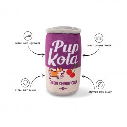 Bienvenue à Wagsdale ! « Pup Kola » est un jouet en peluche pour les chiots accros à la nourriture. Fabriqué avec un couineur très fort et du papier froissé fou, ce jouet a été conçu dans un esprit de jeu interactif. Que vous le couiniez, le froissiez ou le jetiez, ce jouet fera pétiller votre chiot.