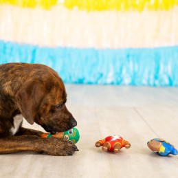 Afm. Per speeltje ongeveer 10 x 10 cm.Luide pieper + Knisperpapier in elk speeltje. Verpakt per set.