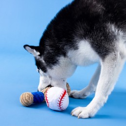 “Batter Up” is een knuffel voor pups die van sporten houden. Dit speelgoed is gemaakt met 1 super luide pieper in de knuppel, 1 luide pieper in de honkbal, gek kreukelpapier en een sleepbaar touw en is ontworpen met interactief spelen in gedachten. Of u hem nu piept, kreukt, eraan trekt of gooit, jouw pup zal hem tijdens het spelen het park uit slaan.