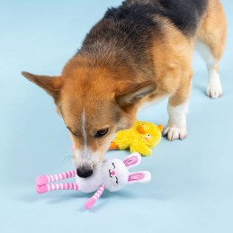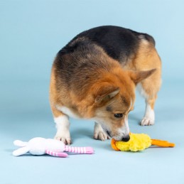 De 2-delige knuffelset "Hoppy go glucky" van PetShop by Fringe Studio is perfect om mee te spelen, waar dan ook. Deze set is gemaakt met een super luide pieper en gek kreukelpapier in elk speeltje en is ontworpen met interactief spelen in gedachten. Of je nu piept, kreukt Of gooi ze weg, dit speelgoed zal uw pup dierbaar worden. Ideaal voor alle hondengroottes en niet bedoeld voor agressieve kauwers.