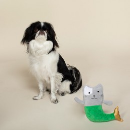 Pluche kat met Meermin pakje aan. Extra luide pieper. Afm. 23x23cm. Per stuk verpakt.