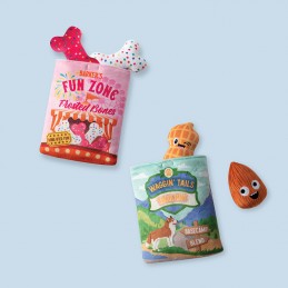 Maak een wandeling! De pluchen speelgoedset "Waggin' Tails Trail Mix" van PetShop by Fringe Studio is perfect voor energieke pups die houden van interactief puzzelspeelgoed. Deze set bevat 1 holzak met gek kreukelpapier en 2 minispeeltjes met luide piepers. Houd honden bezig met verstoppertje-plezier: verstop eenvoudig het minispeelgoed in de holzak, laat een minispeeltje piepen of kreuk de zak, en kijk hoe jouw hond probeert uit te vinden hoe hij ze eruit moet trekken. Deze vervelingsbreker zorgt ervoor dat jouw pup blijft zoeken naar deze zoete lekkernijen!