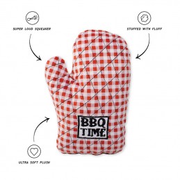 "Can't Touch This" is een knuffel voor pups die dol zijn op chillen en grillen. Gemaakt met een super luide pieper en gevuld met pluche, kan dit speeltje voor iemand anders dan jouw pup te heet zijn om vast te houden.