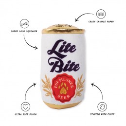 "Lite Bite Pup Pilsner" is een knuffel die perfect is om op elk moment mee te spelen. Dit speelgoed is gemaakt met een super luide pieper en waanzinnig gekreukeld papier en is ontworpen met interactief spelen in gedachten. Of je het nu piept, kreukt of gooit, het is het enige bier dat je pup nodig heeft voor een geweldige tijd.