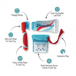 Flossen leuk! De 3-delige mini-knuffelset "Minty Fresh" van PetShop by Fringe Studio is perfect voor de drukke kat. Dit speelgoed is gemaakt met Noord-Amerikaans kattenkruid, gek kreukelpapier en bungelend touw en is ontworpen met interactief spelen in gedachten. Deze set is ideaal voor bespringen, knuppelen, achtervolgen en spelen en helpt katten hun speeltijd op te frissen.